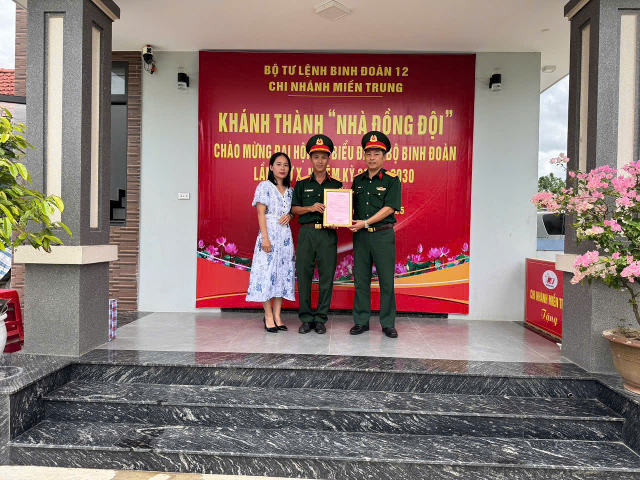 Chiều ngày 22/7/2025, hướng tới chào mừng kỷ niệm 80 năm Cách mạng tháng Tám thành công và Quốc khánh nước Cộng hoà xã hội chủ nghĩa Việt Nam, chào mừng Đại hội đại biểu Đảng bộ Binh đoàn 12, lần thứ X, nhiệm kỳ 2025 – 2030. Tại thôn Tân Liêm, xã Triệu Bình, tỉnh Quảng Trị, Chi nhánh miền Trung phối hợp chính quyền địa phương tổ chức khánh thành và bàn giao Nhà Đồng đội tặng đồng chí Nguyễn Ngọc Thanh Đội trưởng Đội 25, Chi nhánh miền Trung.
