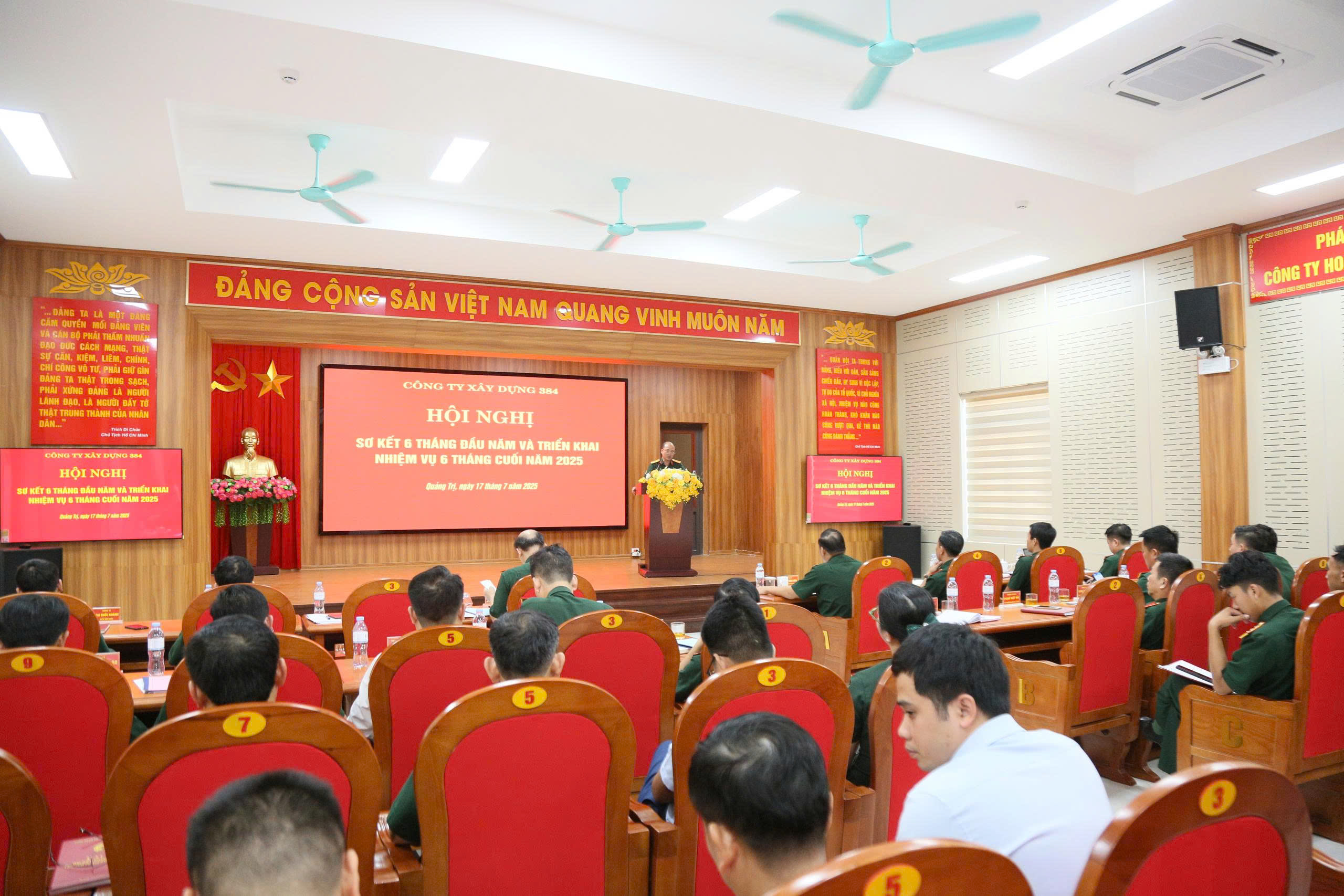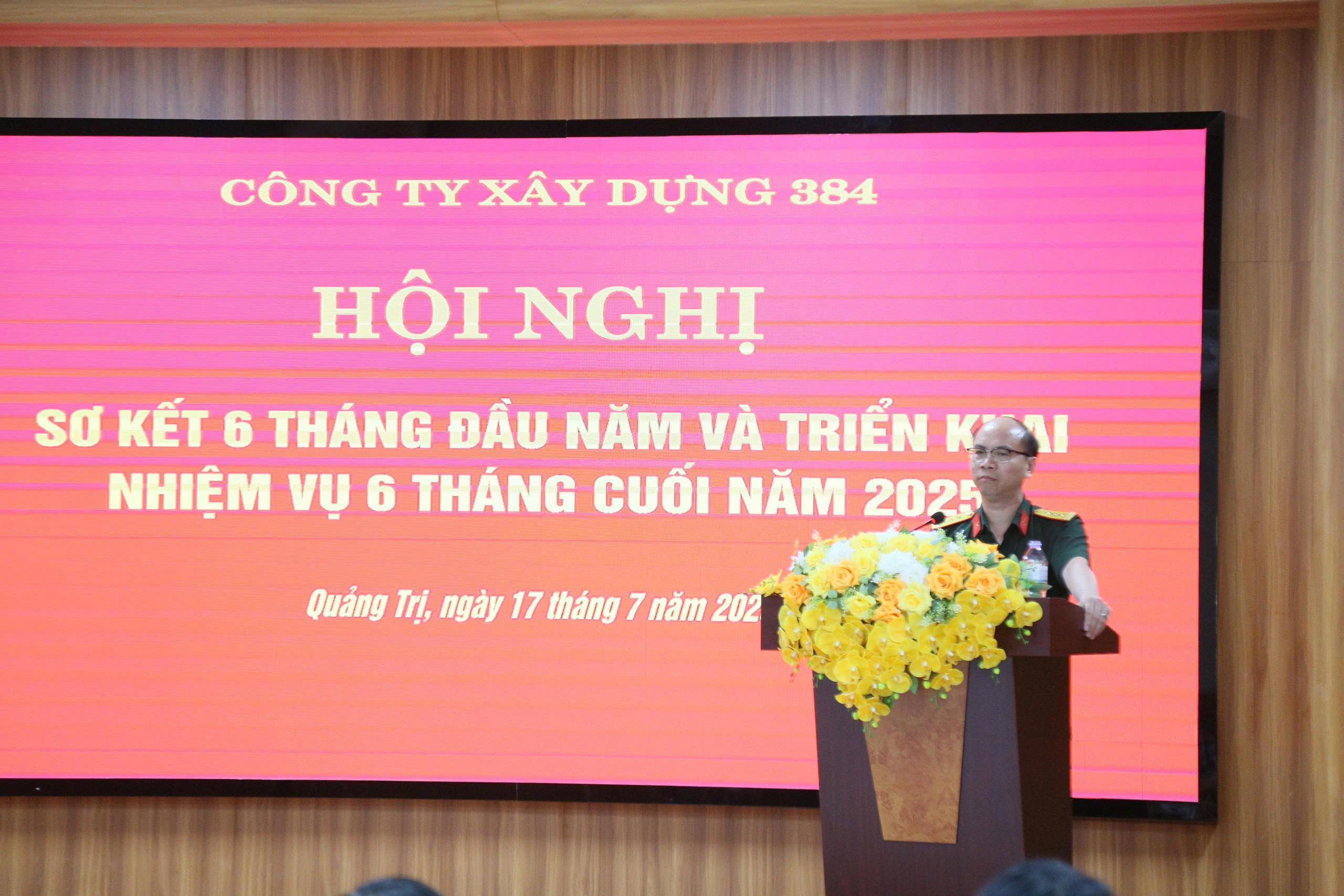 Ngày 17/7/2025 Công ty xây dựng 384 tổ chức Hội nghị sơ kết nhiệm vụ 6 tháng đầu năm, triển khai nhiệm vụ 6 tháng cuối năm 2025. Đồng chí Thượng tá Phạm Đình Đề, Giám đốc Công ty chủ trì Hội nghị. Tham dự Hội nghị có Đồng chí Đại tá Thái Văn Linh, Bí thư Đảng ủy; các đồng chí trong Đảng ủy, Ban Giám đốc Công ty; đồng chí Kiểm soát viên; các đồng chí trưởng, phó phòng các cơ quan chức năng Công ty, chỉ huy Ban Điều hành Trường Sơn 6; giám đốc, bí thư các xí nghiệp trực thuộc; các đồng chí cán bộ trợ lý cơ quan Công ty và kế toán các đơn vị.