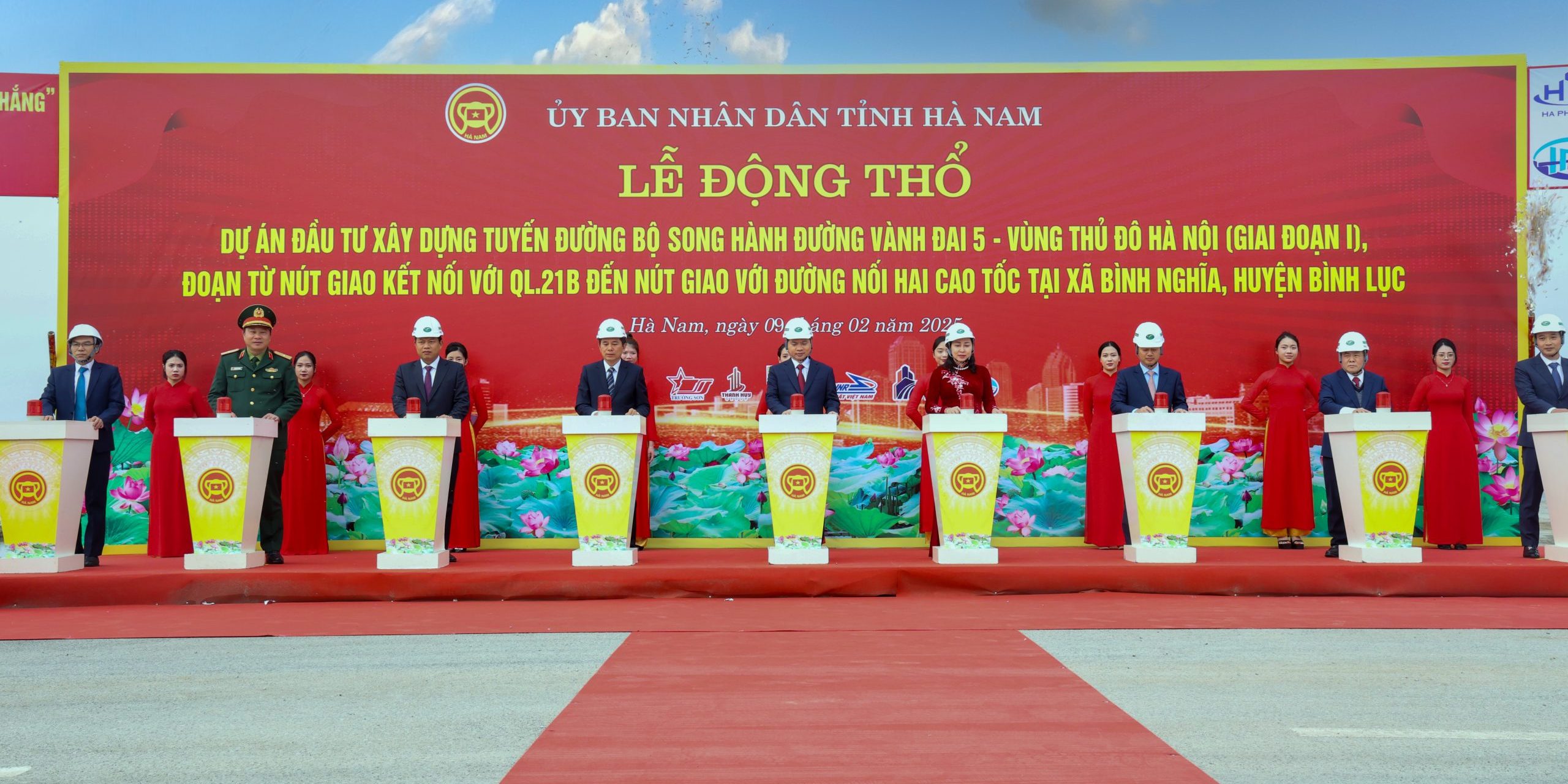 Chiều ngày 09/02/2025, Ủy ban nhân dân Tỉnh Hà Nam tổ chức Lễ động thổ dự án Đầu tư xây dựng tuyến đường bộ song hành đường Vành đai 5 – Vùng Thủ đô Hà Nội (Giai đoạn 1), đoạn từ nút giao kết nối với Quốc lộ 21B đến nút giao đường nối hai cao tốc tại xã Bình Nghĩa, huyện Bình Lục. Dự lễ động thổ có đồng chí Đinh Thị Lụa Phó Bí thư Thường trực Tỉnh ủy Hà Nam; đồng chí Trương Quốc Huy – Phó Bí thư tỉnh ủy, Chủ tịch Ủy ban nhân dân tỉnh Hà Nam; đại biểu tỉnh ủy, Ủy ban nhân dân, Hội đồng nhân dân, lãnh đạo các sở, ban, ngành tỉnh Hà Nam. Về phía Binh đoàn 12 có đồng chí Thiếu tướng Nguyễn Hữu Ngọc – Tư lệnh Binh đoàn; đồng chí Đại tá Nguyễn Thế Lực – Bí thư Đảng ủy, Phó Tư lệnh Binh đoàn; các đồng chí Thủ trưởng Bộ Tư lệnh Binh đoàn và đại biểu cơ quan, đơn vị tham dự Lễ động thổ.