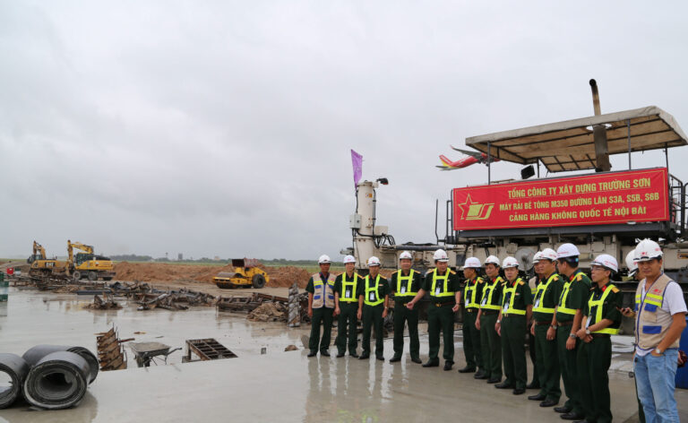 Công ty Xây dựng 99 rải thử nghiệm bê tông M350/45 – Dự án cải tạo, nâng cấp đường cất hạ cánh, đường lăn cảng hàng không Quốc tế Nội Bài 30/07/2020