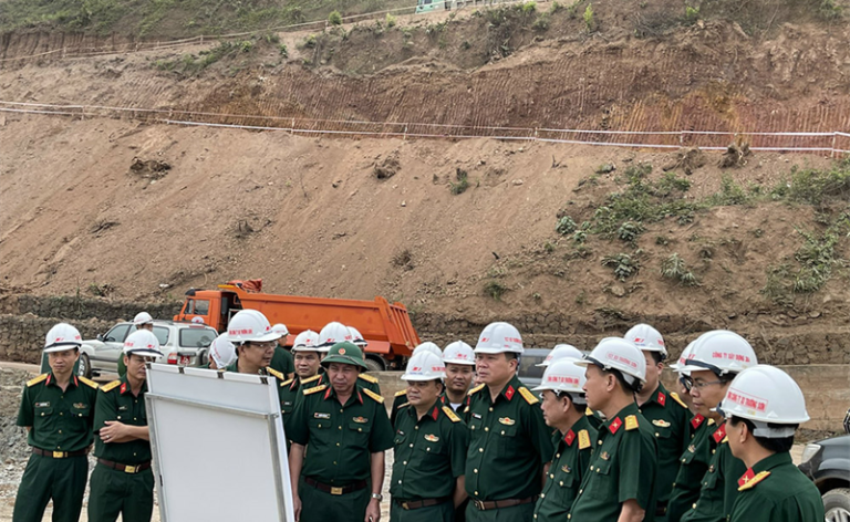 Đoàn công tác Bộ tư lệnh Binh đoàn 12 thị sát công trường Nhà máy Thuỷ điện Hoà Bình mở rộng. 06/07/2021