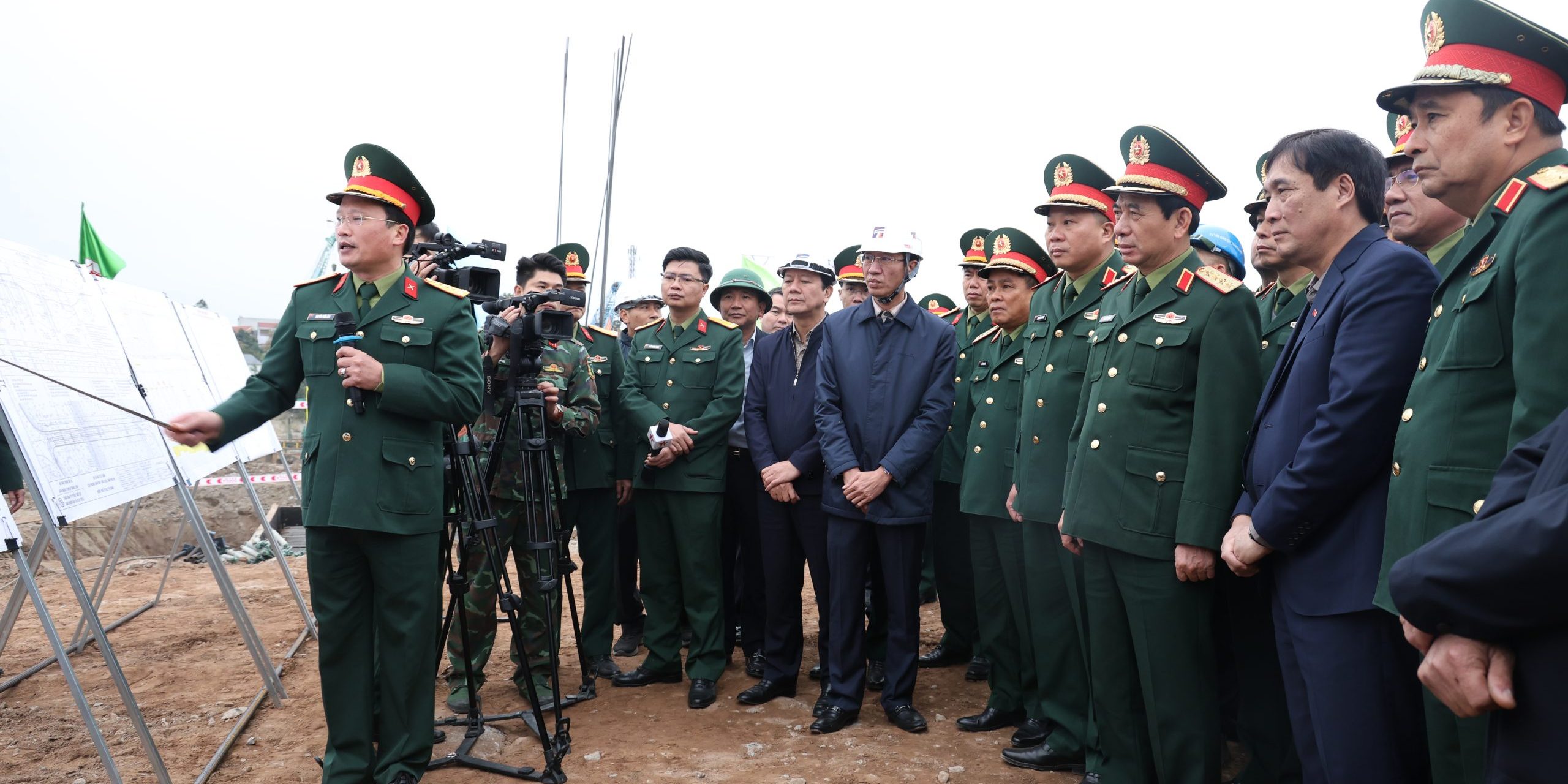 | Đại tướng Phan Văn Giang, Ủy viên Bộ Chính trị, Phó bí thư Quân ủy Trung ương, Bộ trưởng Bộ Quốc phòng kiểm tra thi công cầu Phong Châu mới. |