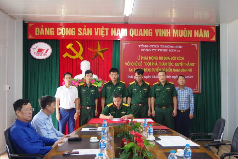 Ngày 13/5/2023, Công ty TNHH MTV 17 tổ chức Lễ phát động thi đua Đột kích với chủ đề “Đột phá, thần tốc, quyết thắng” trên công trường Dự án tuyến đê biển Nam Đình…